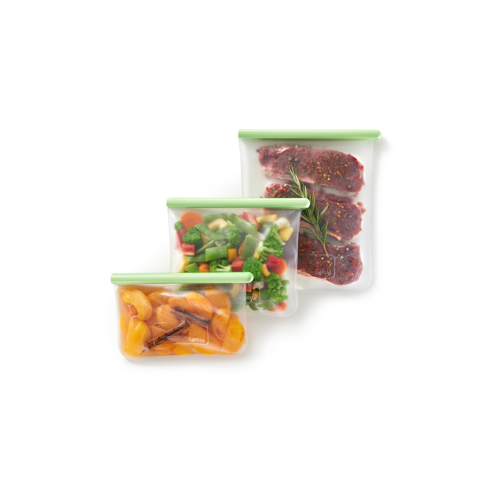 - Esta bolsa es perfecta para almacenar y conservar herméticamente alimentos sólidos en la nevera o el congelador. ¡Y no solo eso! También es ideal para hacer tus propios marinados y mezclas de condimentos, para que tus alimentos queden más jugosos y sabrosos. Al no tener base, los líquidos se distribuyen uniformemente en contacto con todo el alimento.