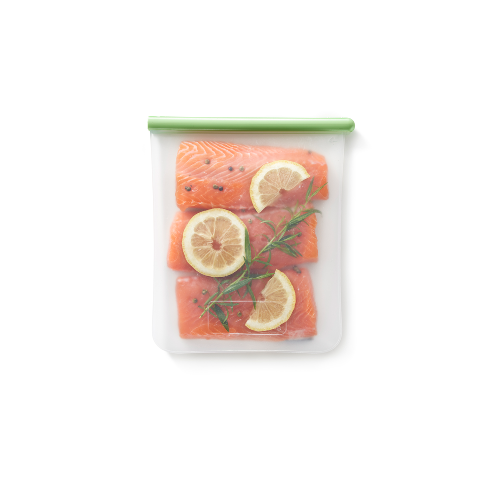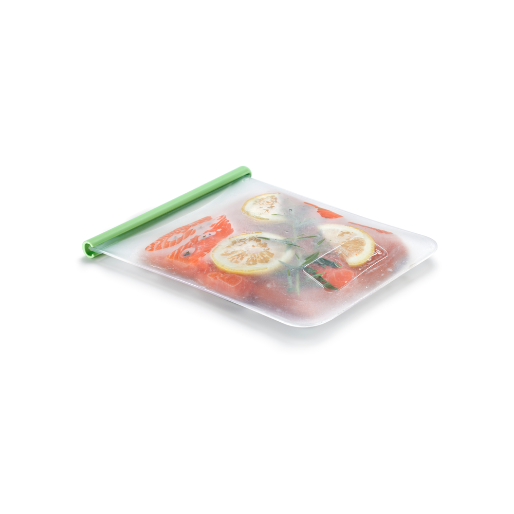 Bolsa de silicona platino reutilizable grande para almacenar, conservar y marinar herméticamente los alimentos. Una alternativa sostenible a los envases de plástico de un solo uso, envoltorios desechables, bandejas, papel film…