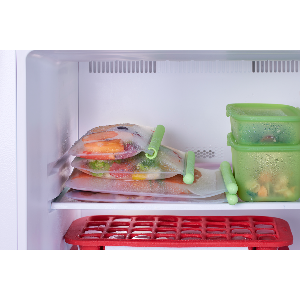 - Fabricadas con Silicona Platino un material de alta calidad, higiénico, ligero y resistente. El grosor de la silicona protege los alimentos de la escarcha. Producto libre de BPA.