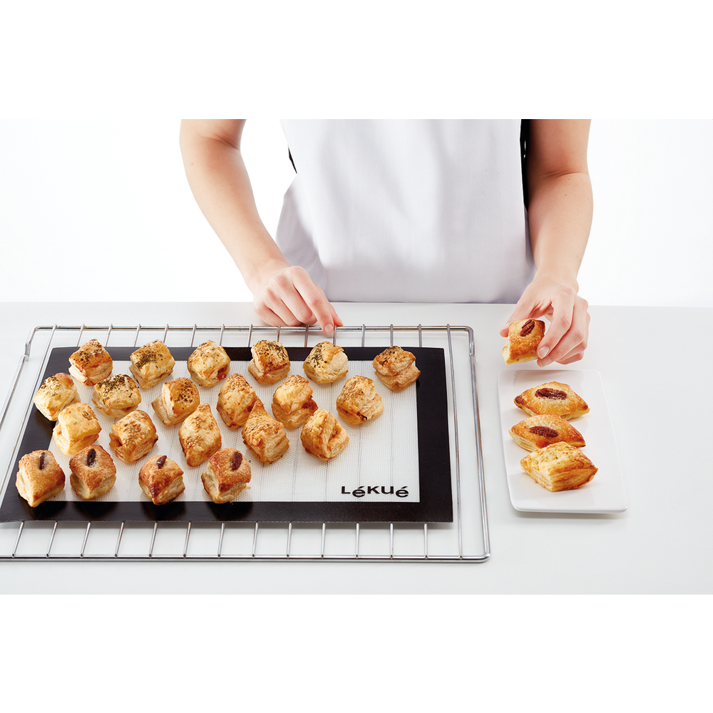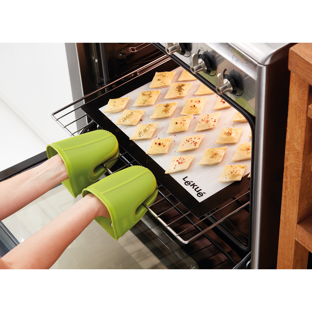 Tapete de cocción antiadherente en silicona y fibra de vidrio.