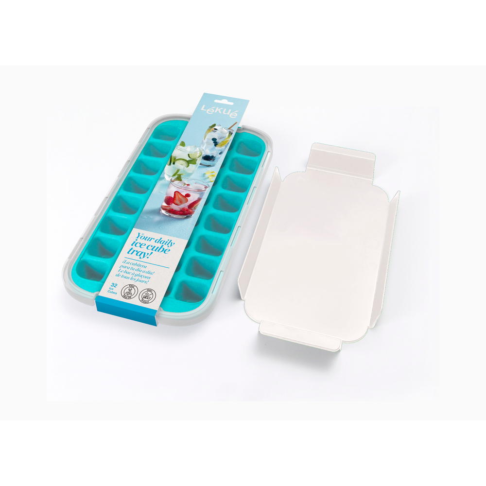 Esta cubitera con tapa de tamaño extra grande permite hacer hasta 32 cubitos de hielo con forma cuadrada. Es una cubitera tradicional perfecta para el día a día y también para celebraciones con invitados.