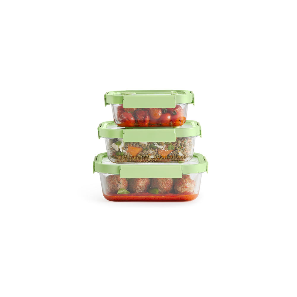 - Su tapa de vidrio resistente al calor no solo preserva la frescura de tus comidas, sino que también es fácil de limpiar y evita manchas y olores. La válvula integrada permite calentar en el microondas sin retirar la tapa. Incluyen un fechador para un seguimiento preciso de tus alimentos.